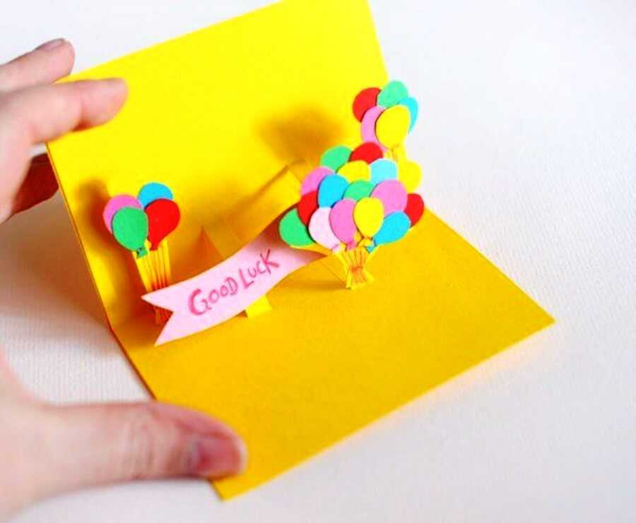 Можно сделать на День Рождения вместе с ребенком и объемную открытку.