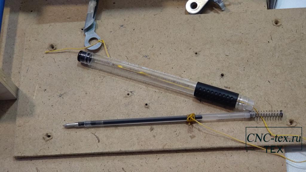 В корпусе ручки сделал отверстия, и продернул нить. Установил пасту на место.