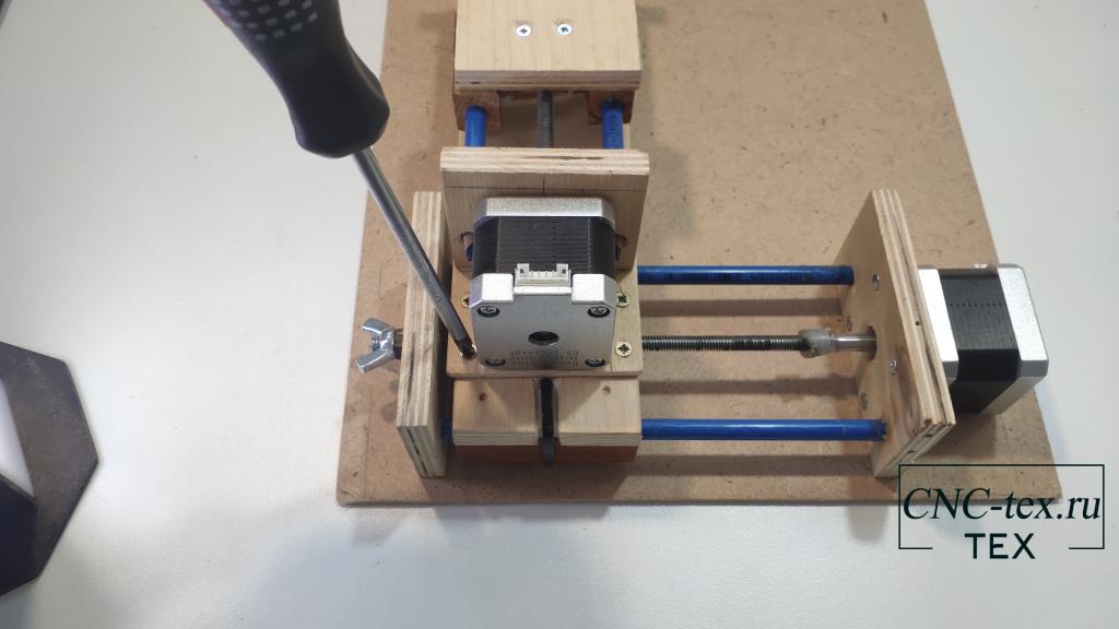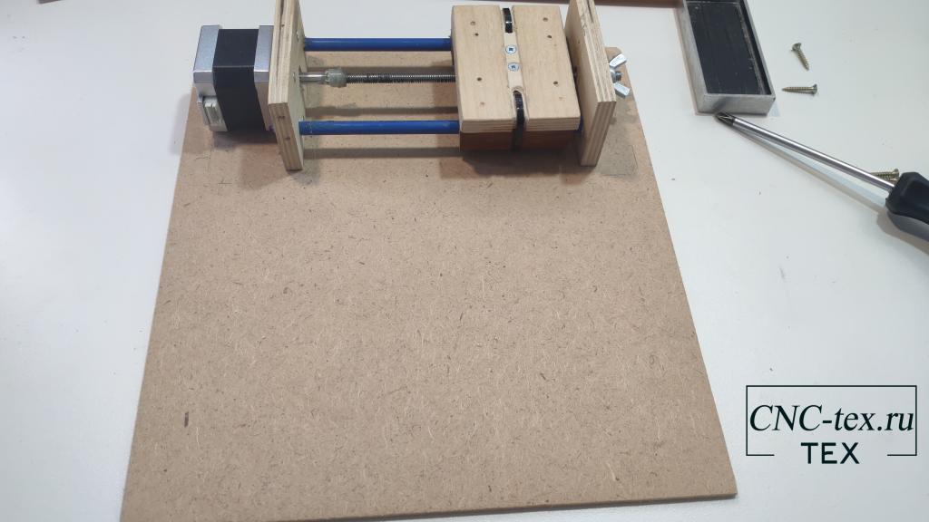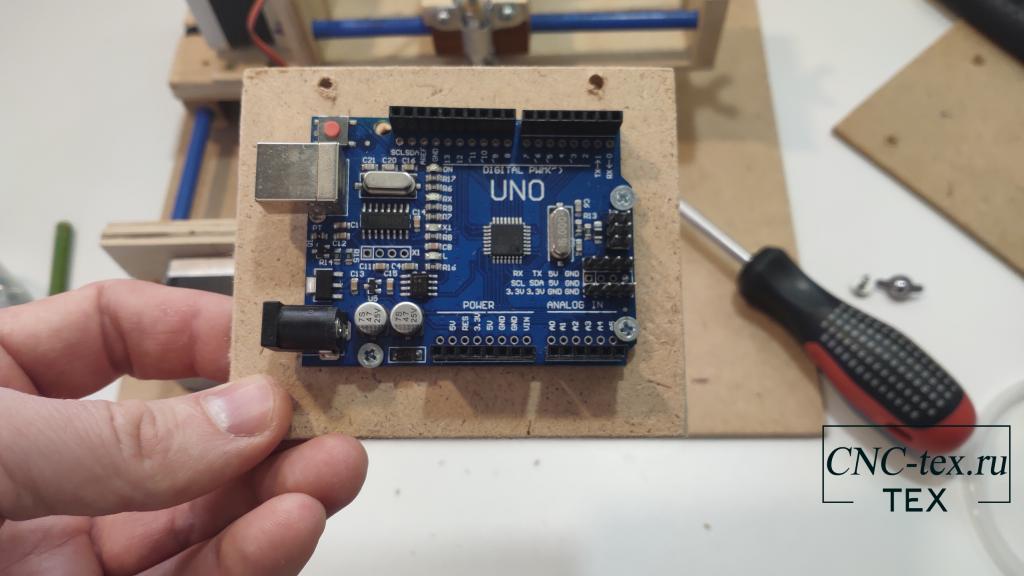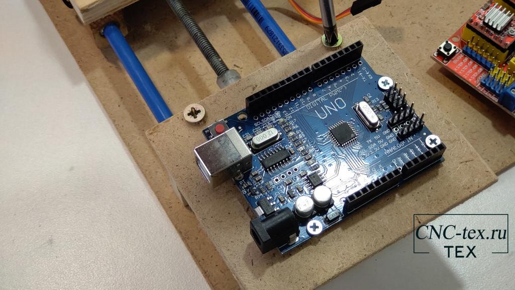 Сверху двигателя оси Y установил фанерку с Arduino.