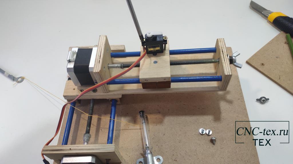 Как собирал каретку, можете почитать в предыдущей статье. Про нее могу сказать одно: сделана она из карандашей, строительной шпильки и фанеры.