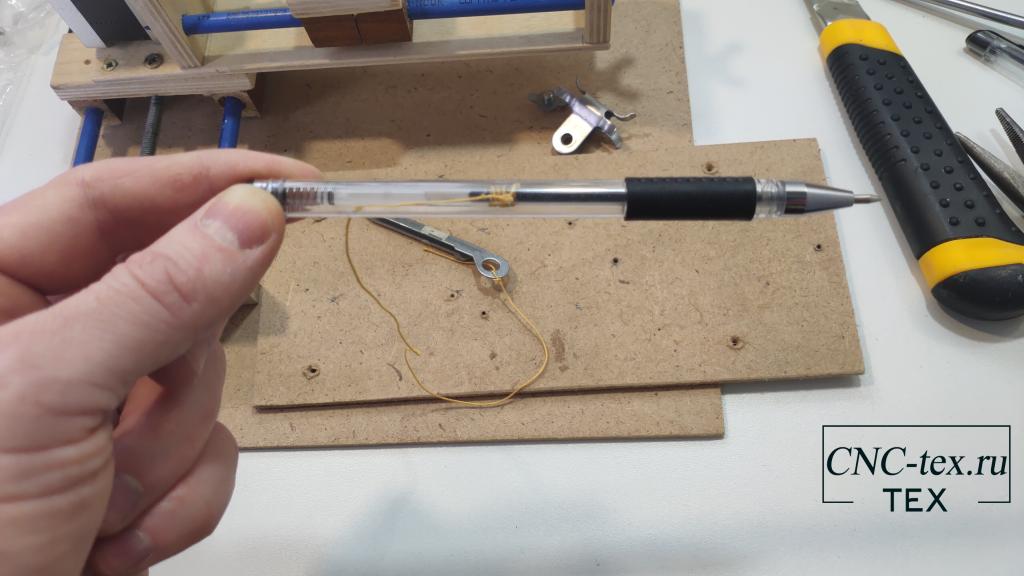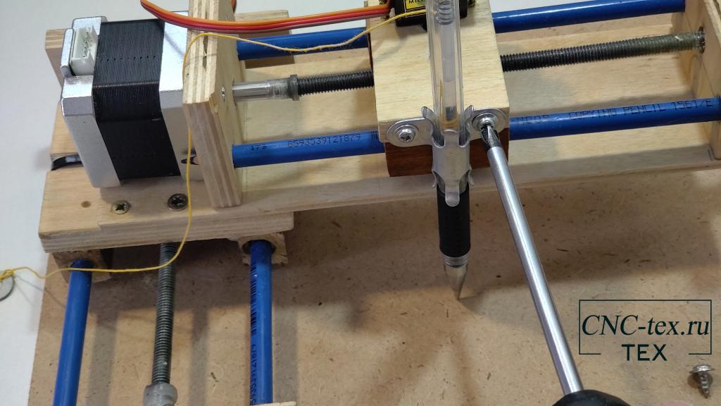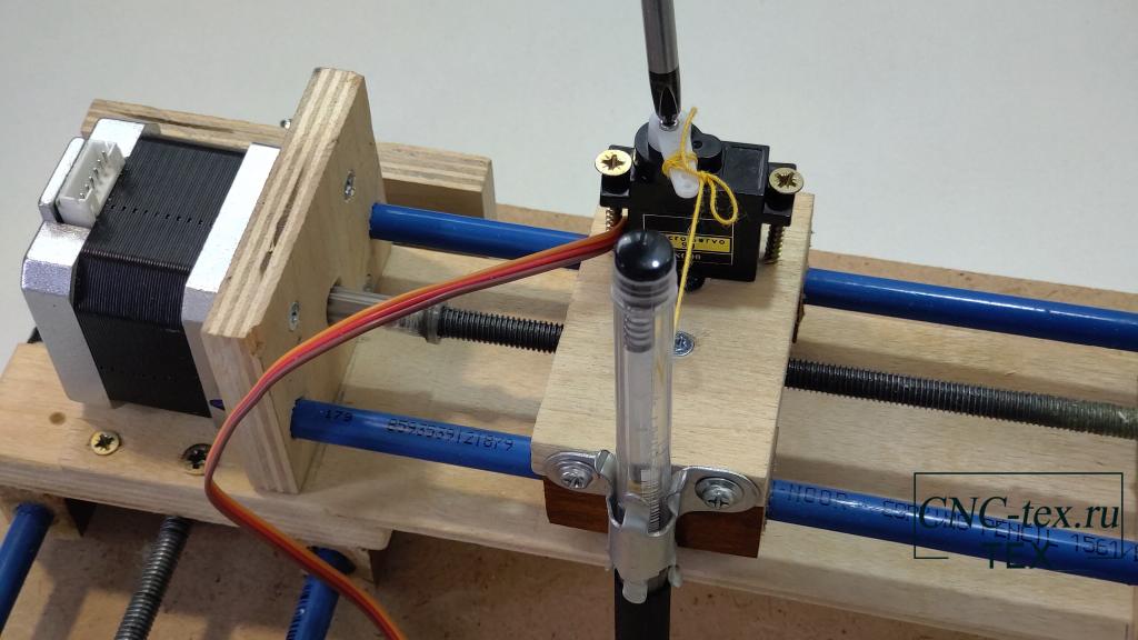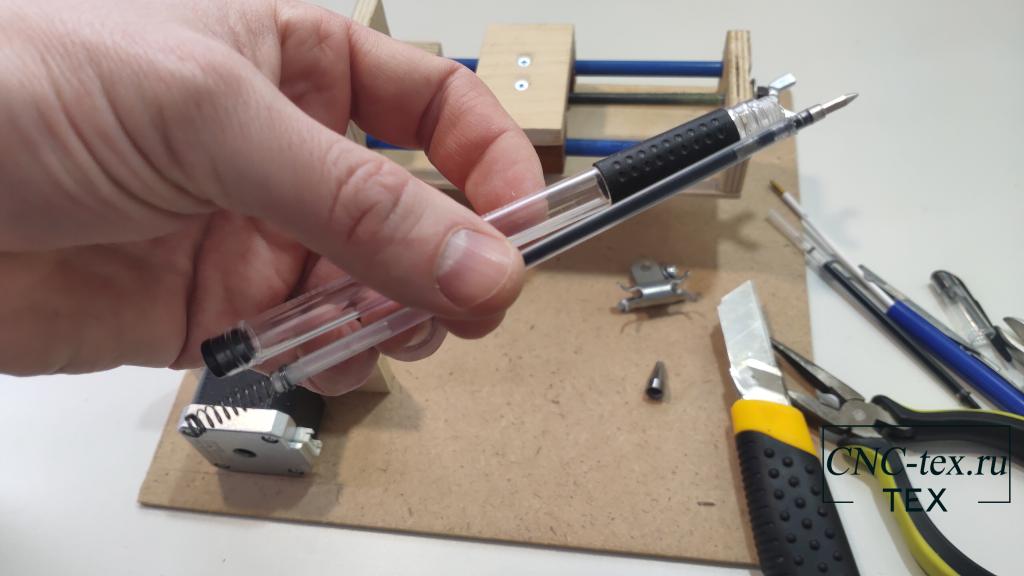 Используя держатель от циркуля «козья ножка», прикрепил ручку на ось X.