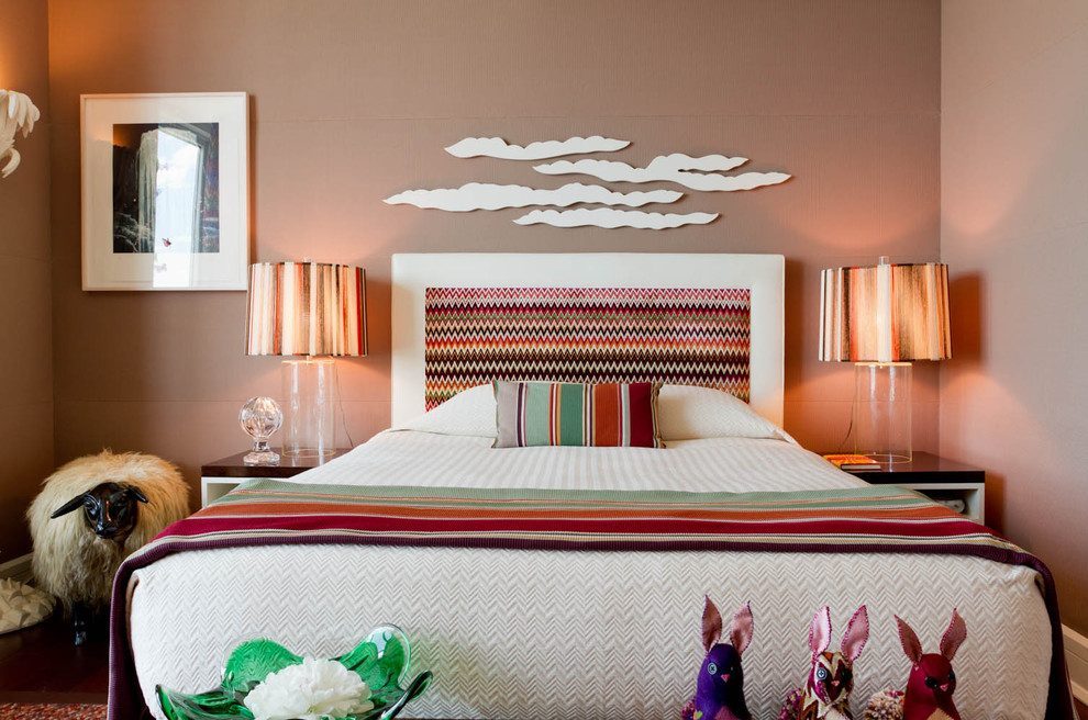 Самые универсальные принты для росписи стен это: клетка виши или тартан, полосы, ромбы, растительные мотивы, марокканские узоры (на фото ниже).