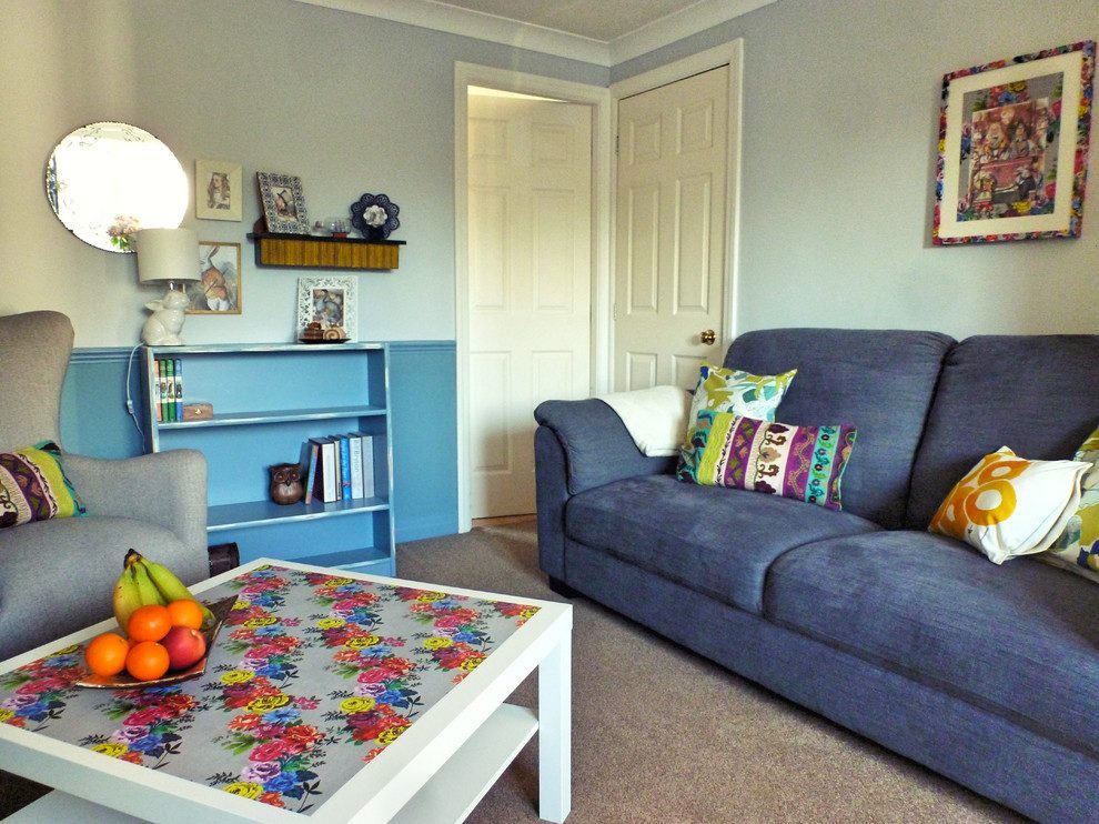 Желательно, чтобы настенный рисунок перекликался с какими-либо элементами интерьера, например, с подушками на диване, картиной на одной из стен, ковром, шторами или скатертью.