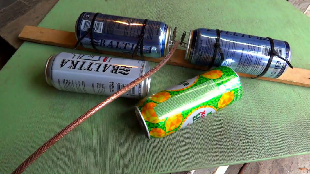Энтузиастами творчества разработано множество самодельных конструкций внешних антенн для улучшения приема. Один из экзотических вариантов – баночная антенна. Для изготовления конструкции требуется две алюминиевых банки из-под напитков объемом 0.33 л.