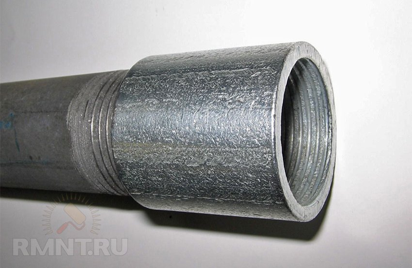 Экономически целесообразно применить оцинкованную толстостенную трубу в виде отрезков длиной 1,5 -2 м. Для удобства монтажа устройства на обоих торцах трубы нарезают резьбу, что позволяет наращивать длину погружаемого устройства при глубоком залегании водоносного слоя.