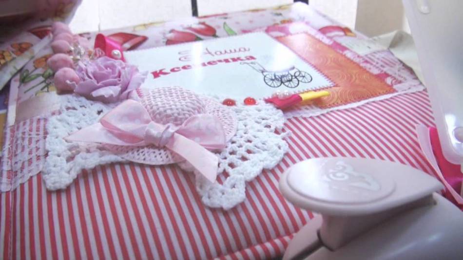 Кроме оборудования для скрапбукинга, существует всевозможный декор. Индустрия предлагает воспользоваться металлическими подвесками, картонными вырубками, готовыми бумажными или тканевыми цветами, чипбордами из картона, гипсовыми рамочками. Глиттеры, краски, структурные пасты, патина, пастель помогут в создании необычных эффектов на бумаге. Перечисляя декор для альбома новорожденного, нельзя не сказать о кружевах и лентах. Идеальным дополнением к фотографиям станет первая срезанная прядь волосиков, отпечаток крохотной ручки и ножки. Именно декор поможет создать эксклюзивное изделие, а тематику альбома подскажет вам сердце!