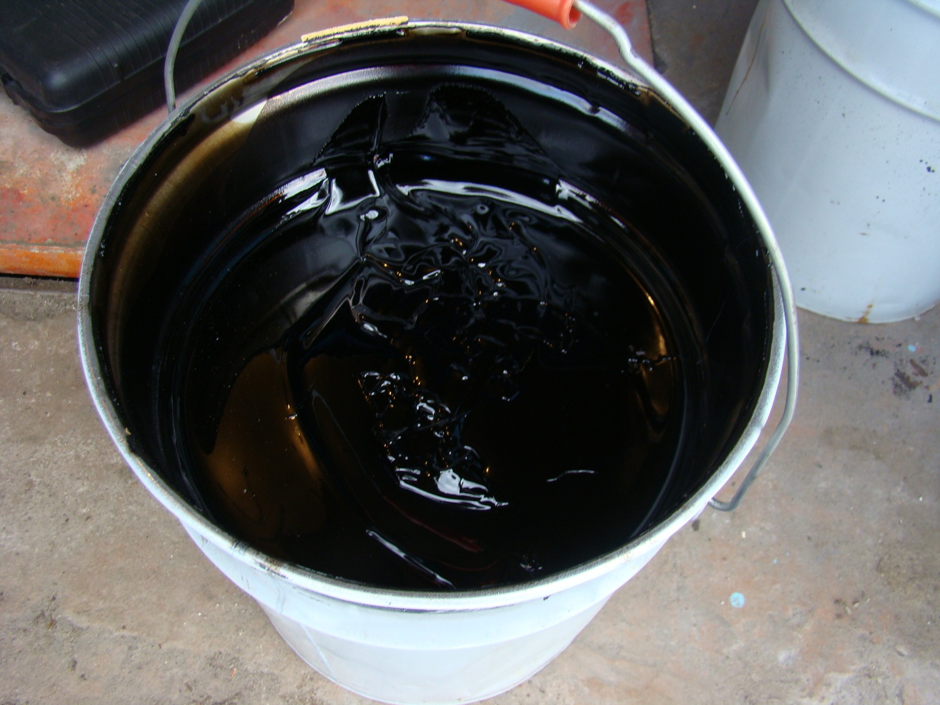 Сначала на огне битум нагревают и периодически помешивают, чтобы удалить все комочки. Когда появится пена, можно будет снять раствор с огня, после добавить в него растворитель, обычно его количество составляет 20-30 процентов.