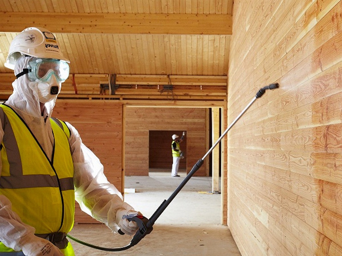 - Если делаются жидкие антисептики, то применяют распыление краскопультом, для более густых выбирают кисточки, валики, либо губка;