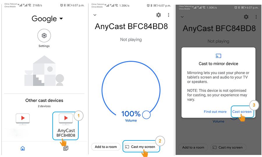 Noted: Make sure both AnyCast and smart devices connected to the same wifi router.
