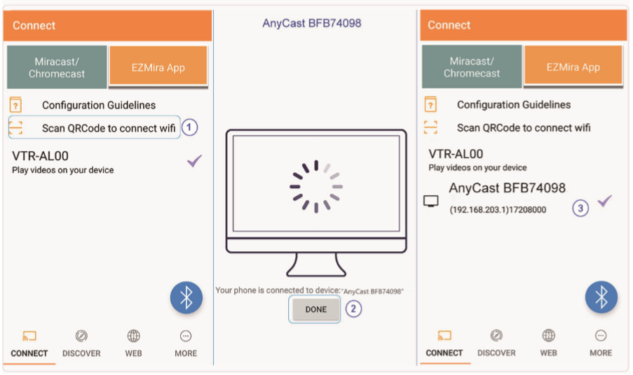 1.3 Tap “Done” icon once the smart device is connected to AnyCast.
