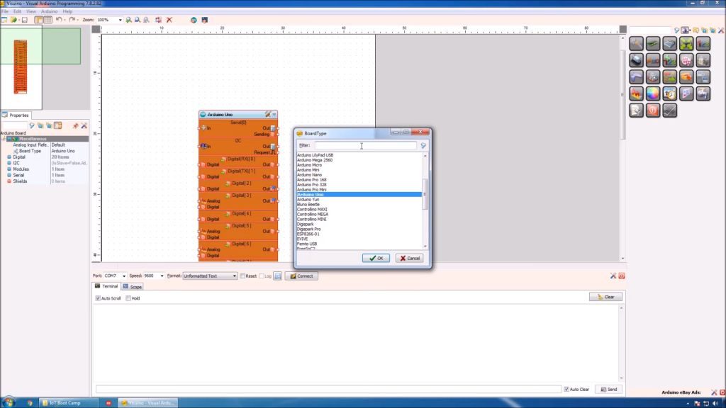 Visuino — это бесплатная графическая среда, работающая на базе совместимых с Arduino промышленных контроллеров (ПЛК) Controllino. Она дает возможность создания сложных систем автоматизации и решений IoT (Internet of Things, интернета вещей), причем сделать это можно, просто перемещая и соединяя визуальные блоки. Программная среда автоматически генерирует код для промышленных контроллеров.