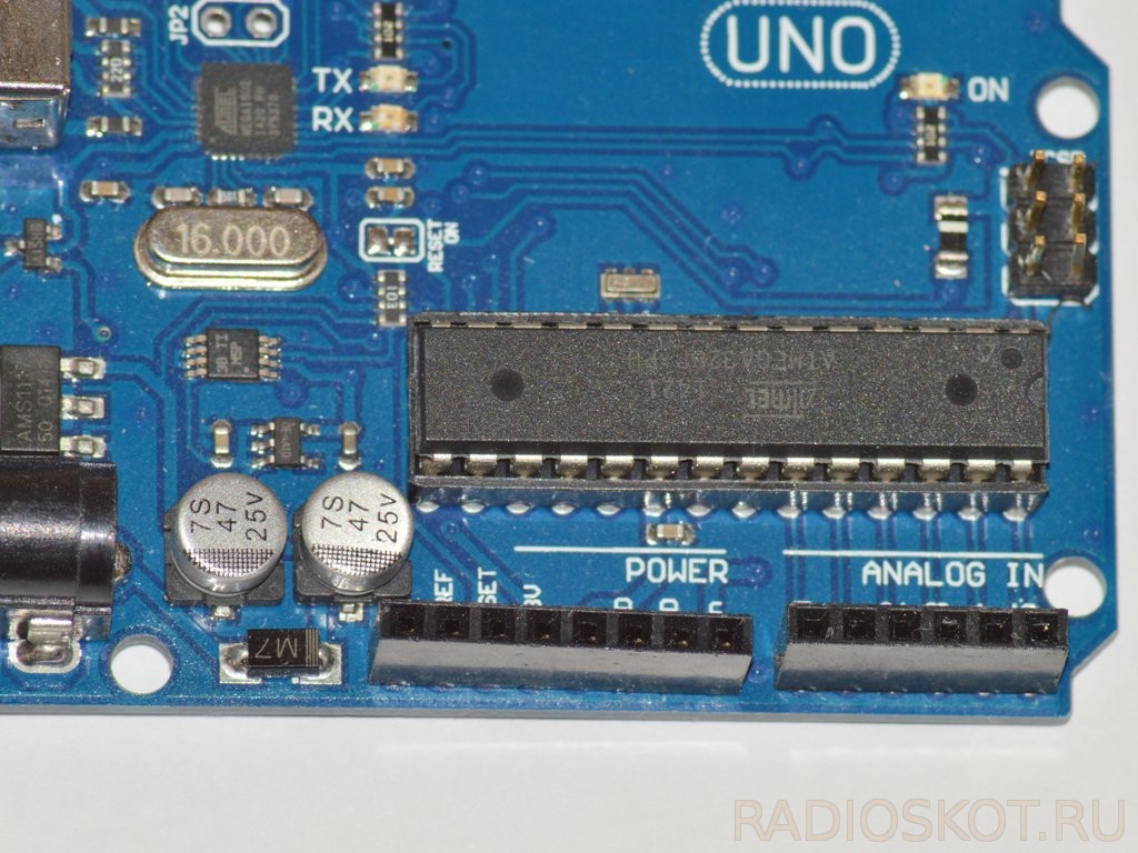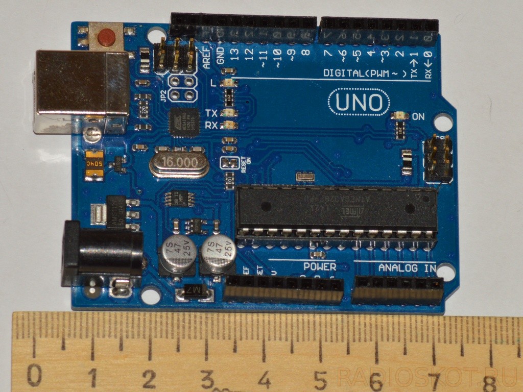Arduino Uno R3 – самая популярная плата, построенная на базе процессора ATmega328. В зависимости от конкретной модели платы этой линейки используются различные микроконтроллеры, на момент написания статьи самой распространённой является версия именно R3.