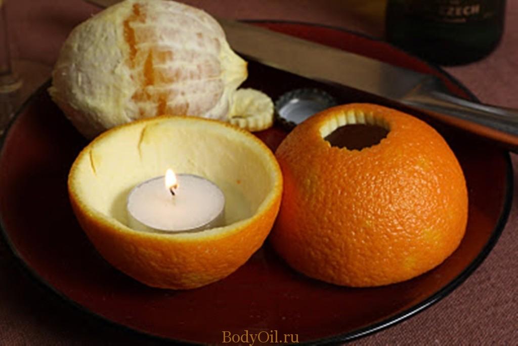 - Смазать ароматическим маслом всю внутреннюю поверхность апельсина.