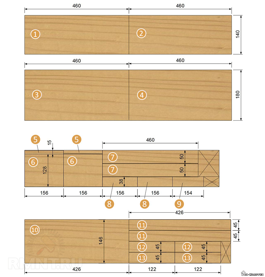 Разметьте пиломатериал по чертежам и нарежьте заготовки.