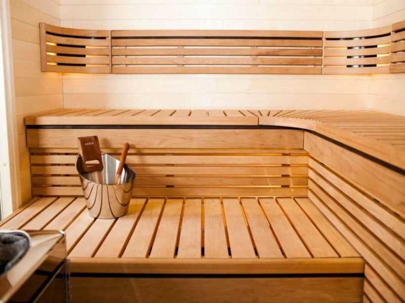 Чтобы в парной удобно разместились больше 5 человек, размеры длинной стены должны быть от 2 м, короткой — от 1,5 м (при условии прямоугольной формы помещения). Вдоль длинной стенки крепятся двух-, трехъярусные полки, где отдыхающие смогут париться лежа или сидя.
