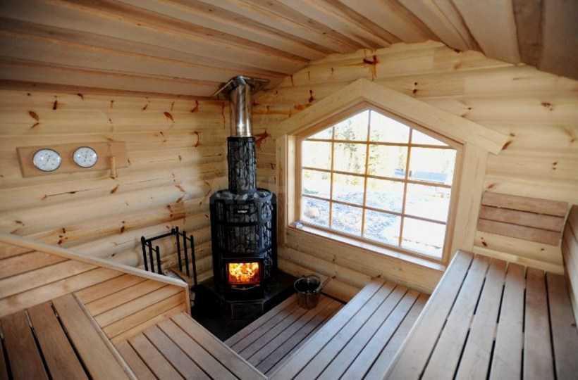 - если организовать вентиляцию не удается, необходимо сделать окно на высоте верхней полки в противоположном от каменки углу; его размер должен быть не более 0,4 м х 0,4 м.