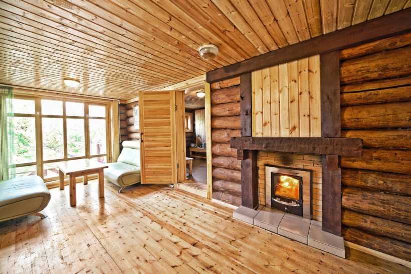 - Парная в срубе в обшивке не нуждается, однако за полоками и полом нужно ухаживать: обрабатывать воском, очищать.
