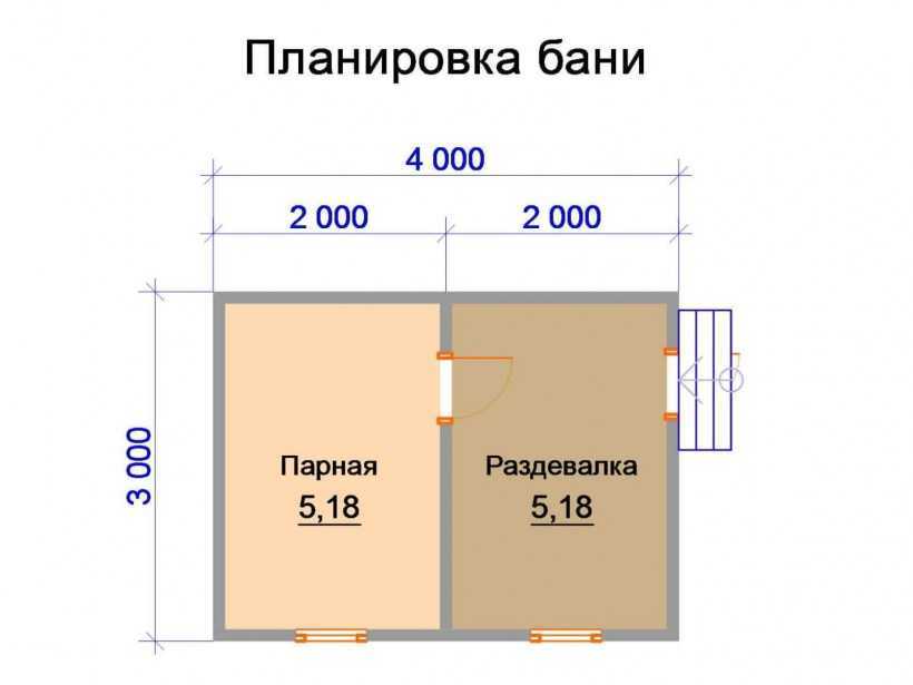 | Крыльцо | Перед входом в баню выполняются ступени. |