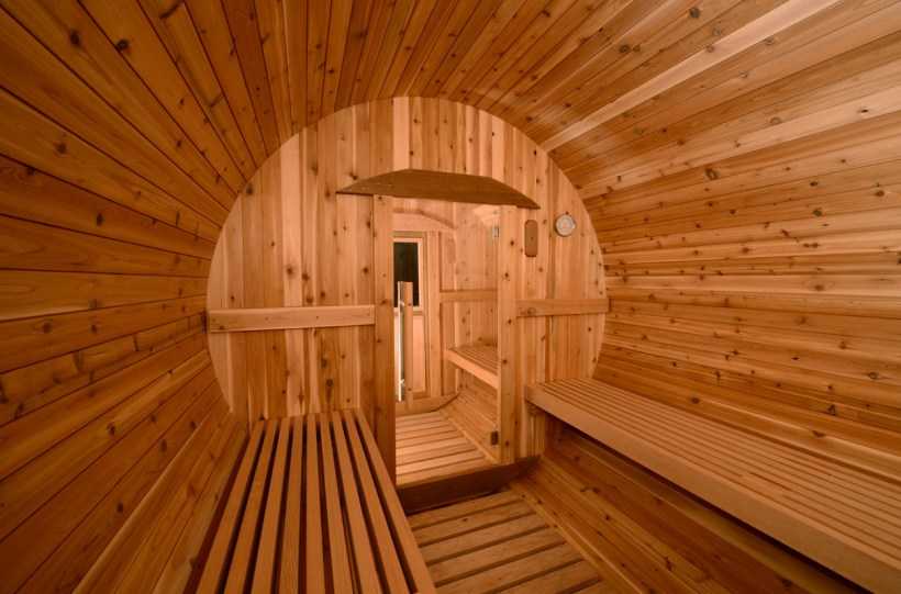 Брусья и доски для бани, изготавливаемой в виде бочки, должны быть выпилены из лиственных пород – осина, липа и так далее. Из хвойных пород допускается применение кедра и лиственницы, стойких к перепадам температур и воздействию влаги. Сосна и ель при сильном нагреве выделяет смолу, чьи капли способны обжечь находящихся в парной людей.