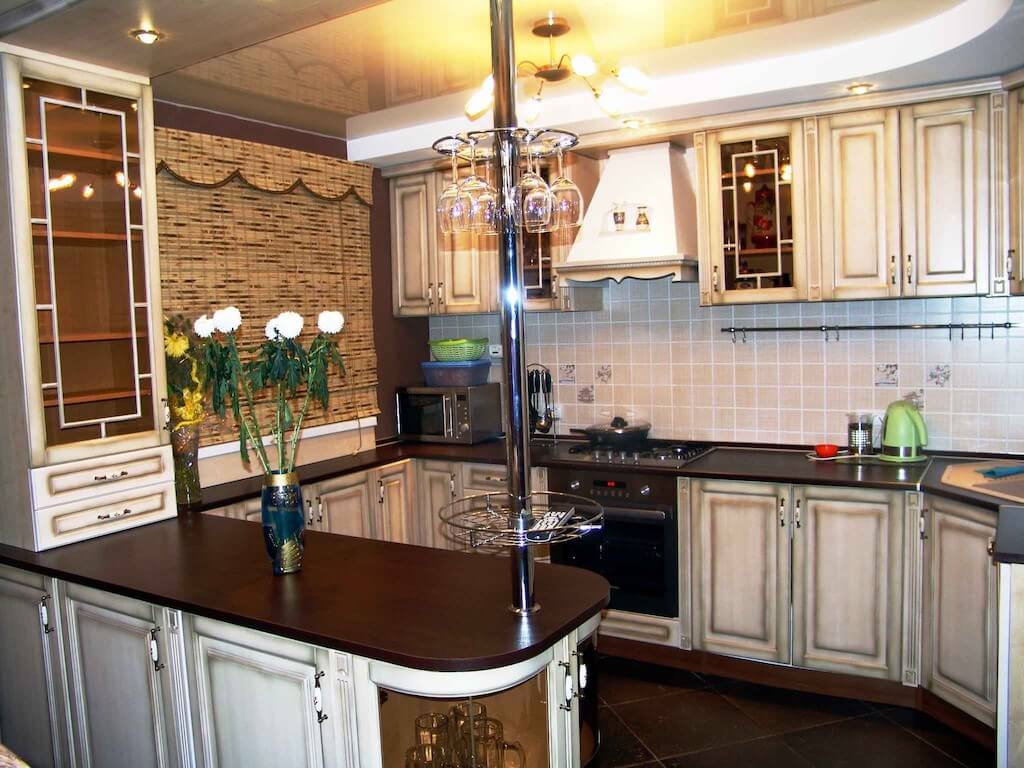 В классическом интерьере правильно подобранная стойка будет смотреться стильно, уместно и роскошно. Удобно то, что чаще всего они идут уже в комплекте с кухонным гарнитуром, поэтому самому ничего выбирать не приходится.