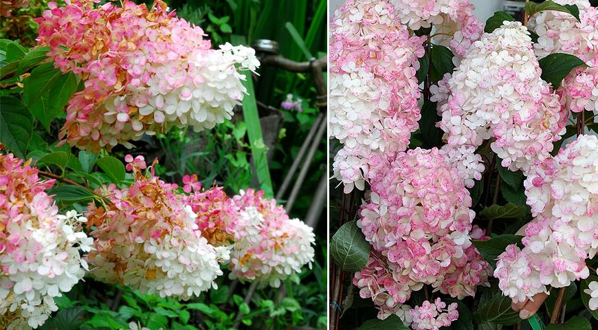 Гортензия метельчатая Vanille Fraise (слева), Mega Mindy (ILVOMindy) (справа)