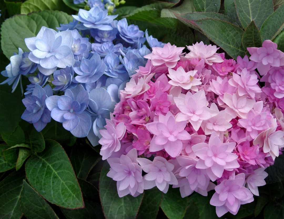 Растение отличается красивой цветовой гаммой и зависимостью от состава почвы. На щелочных почвах приобретает розовый цвет, на кислых – голубой (см. фото).