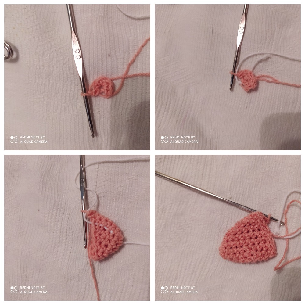 R 41. 1sc ear, 1sc, dec, (2sc, dec)×5 (18)