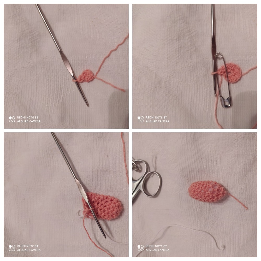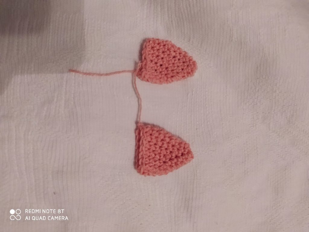 R 40. 8sc, 3sc ear, 1sc ear, 9sc, 1sc ear, 2sc ear (24)