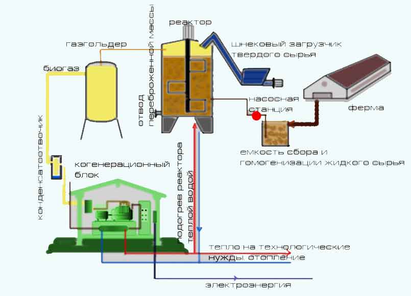 - Продукты жизнедеятельности сельскохозяйственных животных (навоз), отходы пищевых и иных производств (лесопереработка), поступают в накопительные емкости;
