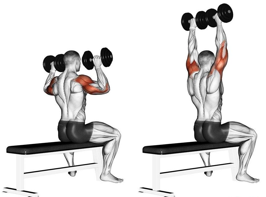 - жим гантелей стоя или лежа;