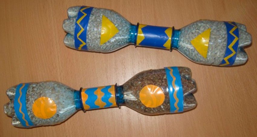 - Бутылки наполняют аналогичным способом, что и гантели.