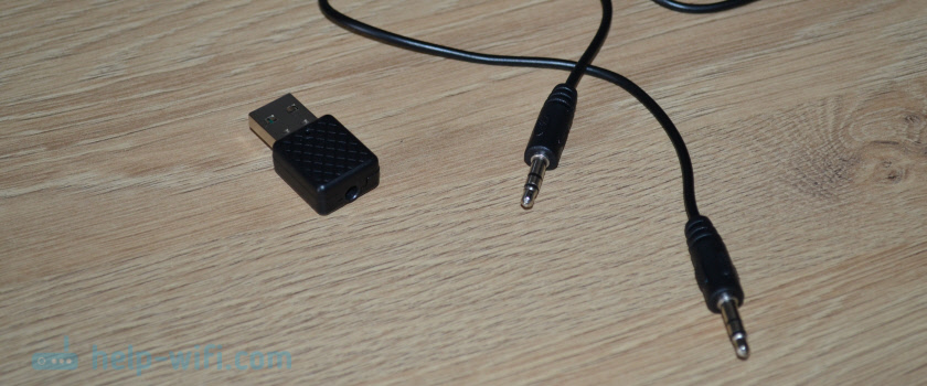- После подключения включаем Bluetooth на своем устройстве (телефоне, планшете, ноутбуке, ПК), и из списка доступных устройств выбираем трансмиттер и подключаемся к нему. Он определится как наушники (гарнитура) и появится возможность выводить на него звук. А он уже в свою очередь будет передавать звук на колонки по кабелю. Если при подключении появится запрос PIN-кода, то попробуйте ввести: 0000, 1111, 8888 или 1234.