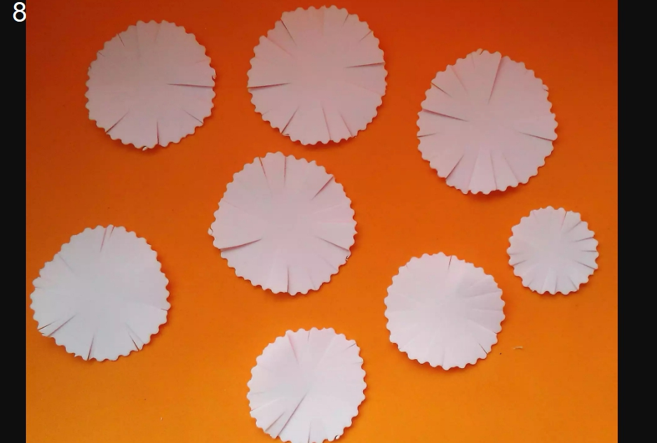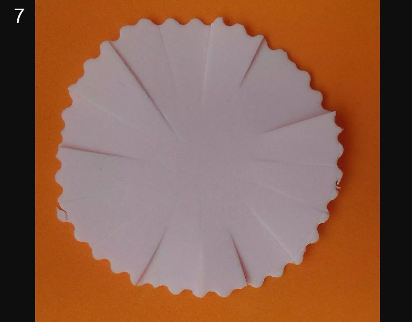 5. Сложите круги пополам и надрежьте, оставив до центра 0,5 см. Каждый полукруг разделите на 2 части.