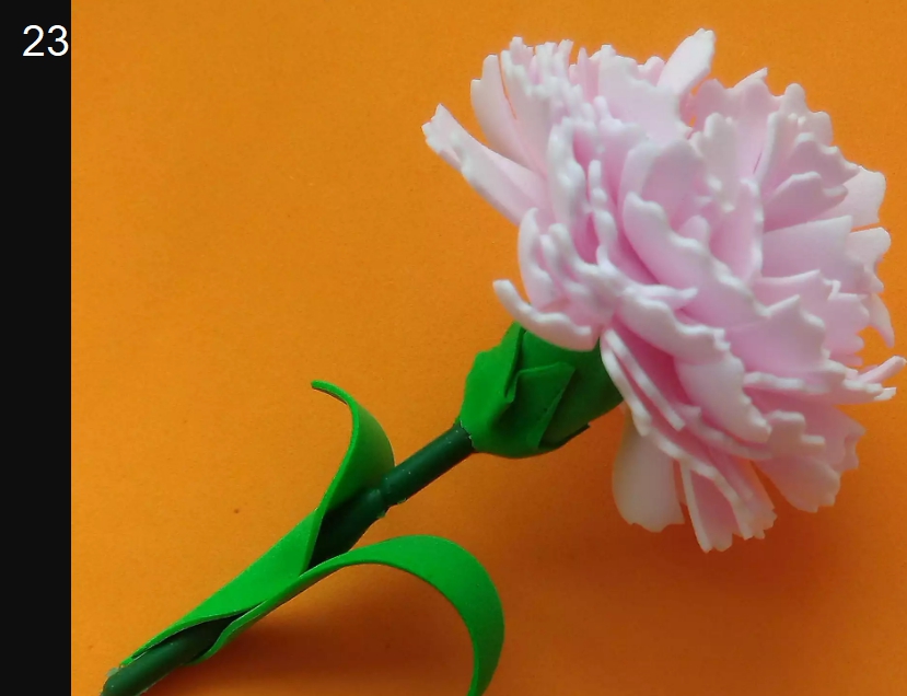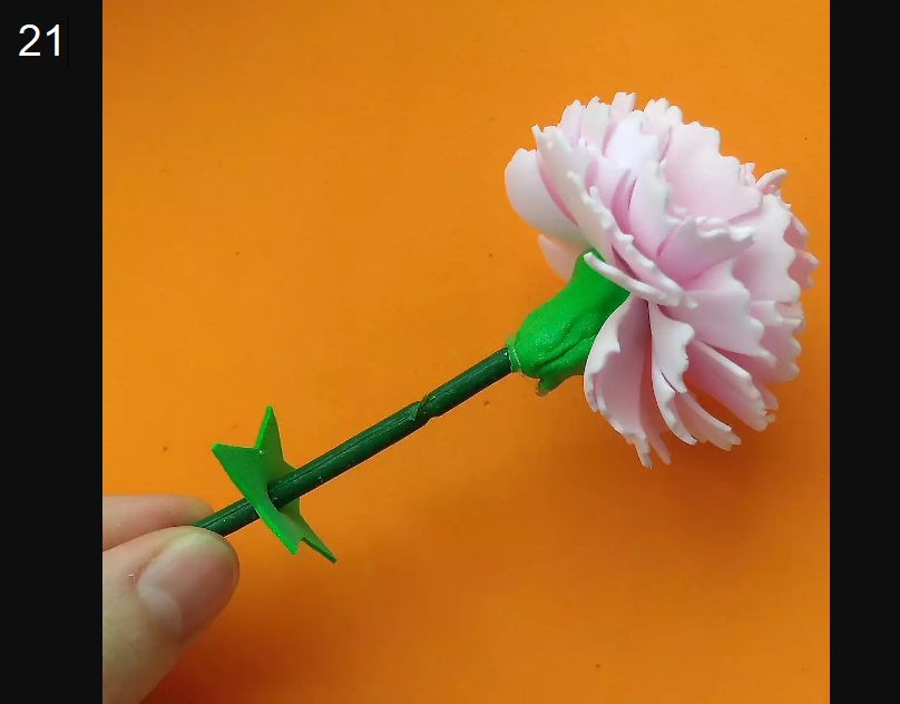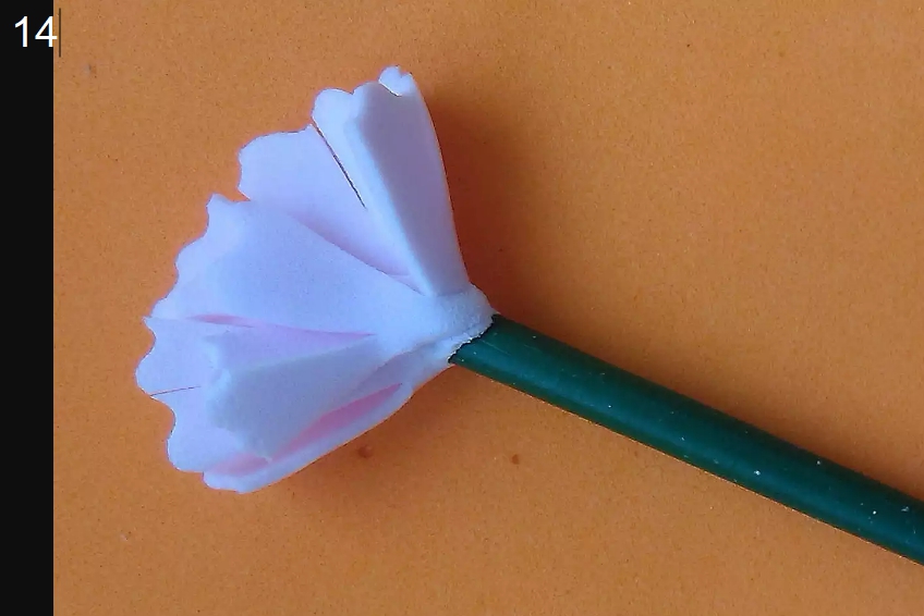 14. Готовую гвоздику приклейте на ленту наискосок.