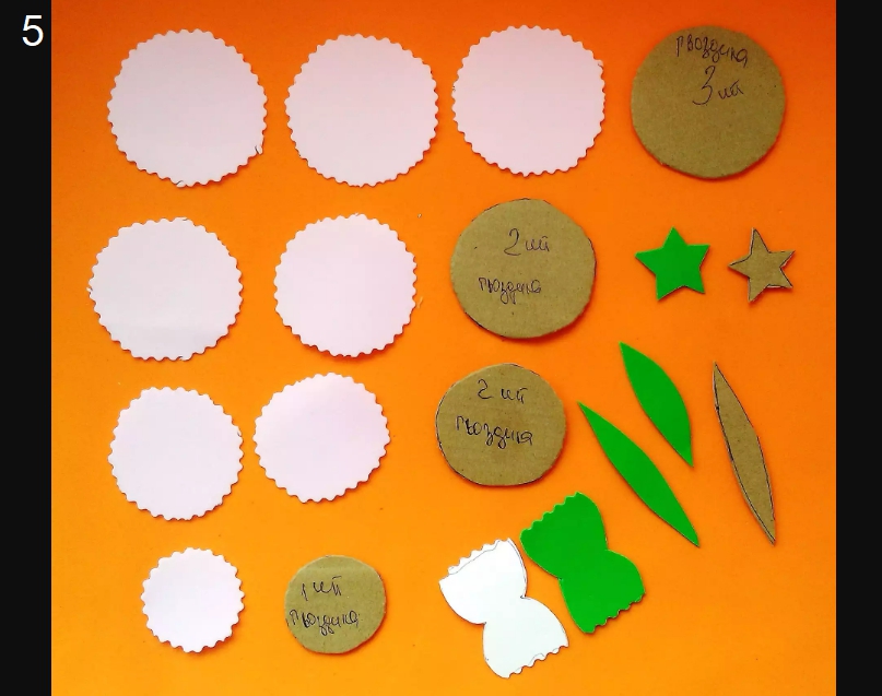 4. Затем обведите шаблоны на фоамиране зубочисткой. Вырежьте круги фигурными ножницами, чтобы получить волнистый край.
