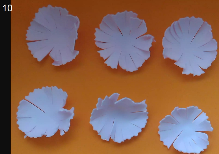По нижнему краю каждая заготовка прихватывается белой ниткой, а затем если ее аккуратно потянуть, получается нежный лепесток.