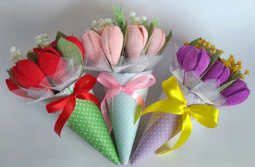 Можно можно пойти еще более простым путем, сделать сувенир из бумаги, но не такой как все остальные, а с изюминкой. Подарить можно отдельно по одному цветку, тому кто вам так дорог, отличная идея для 8 марта. И как говорится и дешево и сердито.