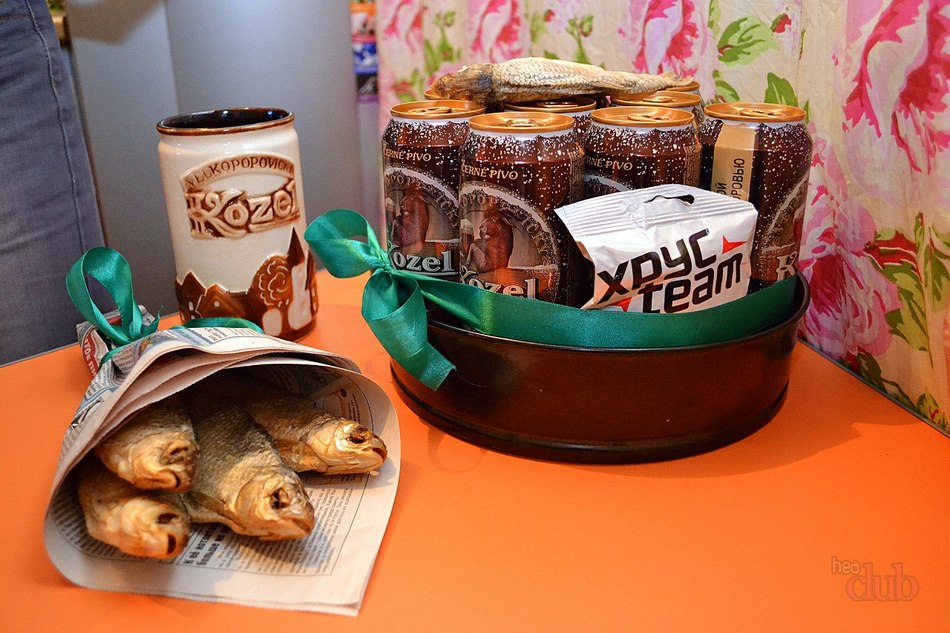 - Большая банка пива. Можно даже приобрести небольшой бочонок — он будет смотреться достаточно интересно