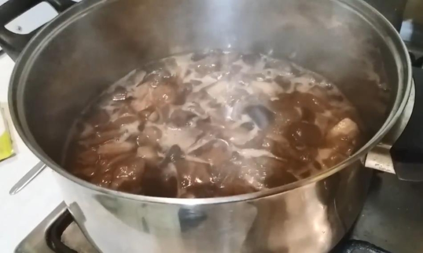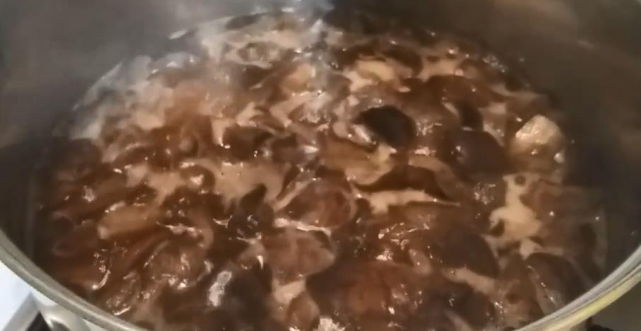 - Накрыть емкость крышкой, довести грибную массу до кипения на медленном огне.