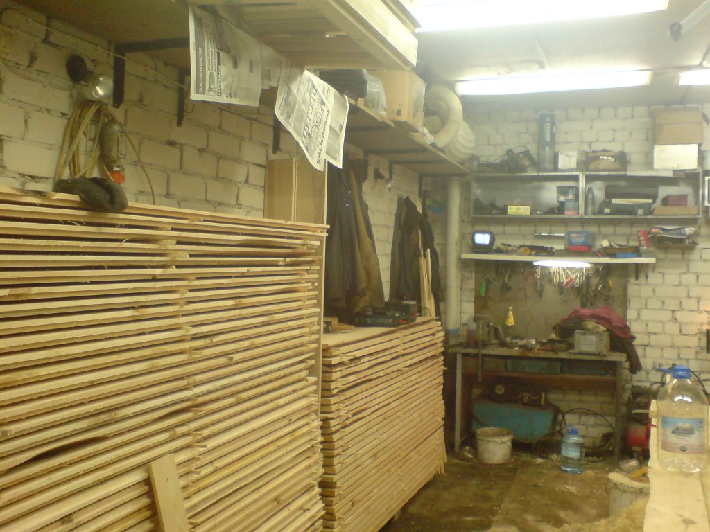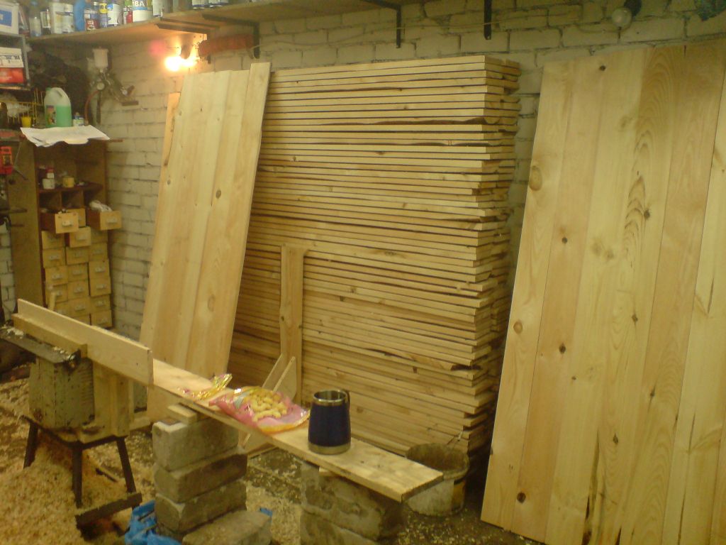 Дюймовая доска строгалась с четырех сторон. Толщина не строганой доски, вследствие её «не строганости» была в пределах 22-30 мм. Из куба доски (133 шт.) отобралось 80 наиболее схожих по толщине, и приемлемых по качеству досок. После строгания перепад по толщине конечно имел место, но этим неприятным фактом решено было пренебречь.