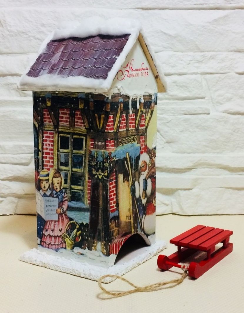 по типу используемого материала. Особых ограничений нет, проще всего изготовить домик из картона (можно просто подобрать нужную по размеры коробку и украсить ее), можно использовать фанерные деревянные листы, да и полимерная глина подойдет, нужно только иметь минимальные навыки лепки и сразу подумать, где запечь готовое изделие;