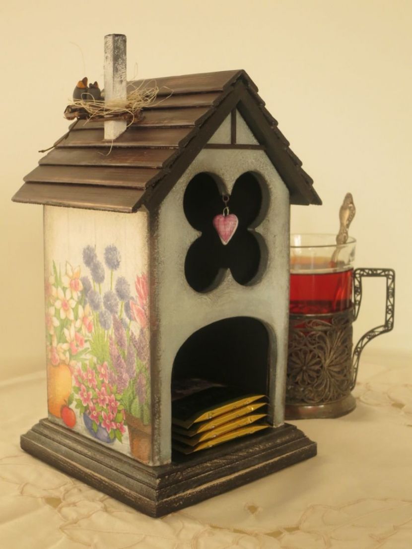 Чайный домик — это симпатичный аксессуар, который придаст уют вашей кухне и надолго запомнится вашим гостям. Выглядит как небольшой домик, в котором находятся пакетики с чаем.