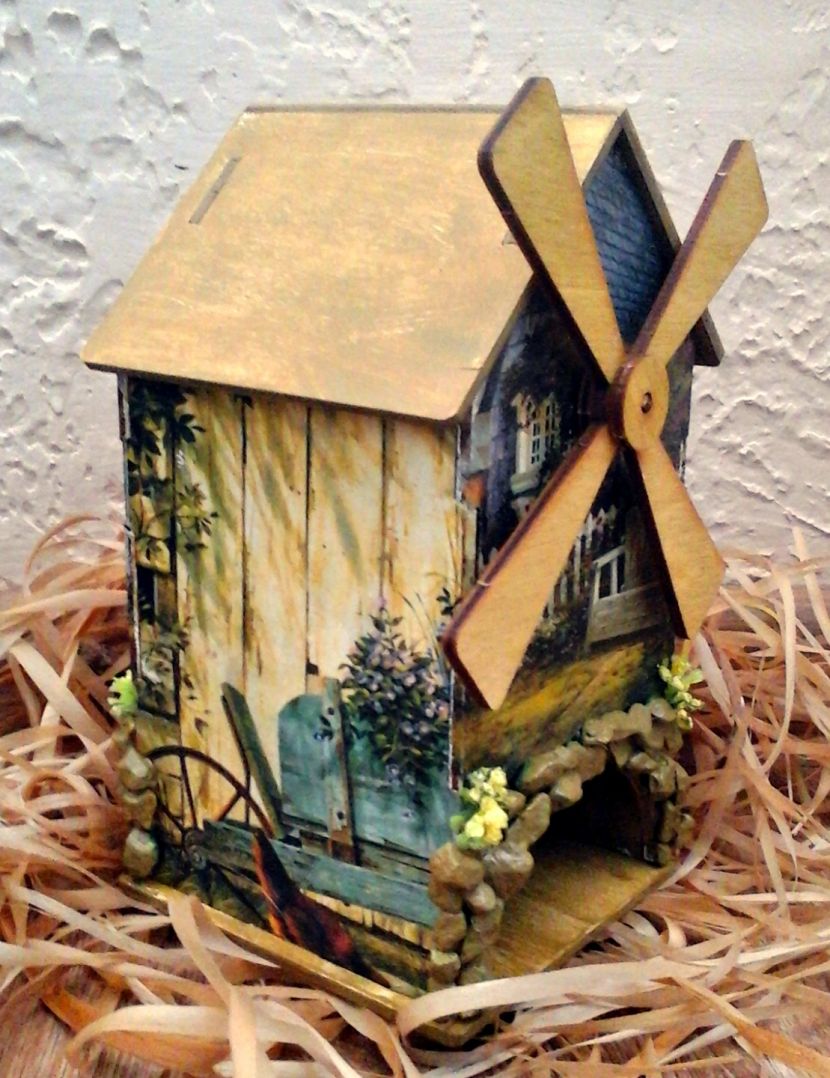 Для начала необходимо определиться каким будет в финале чайный домик: будет ли он в виде шкатулки или похож на избушку Бабы Яги? Если позволяет интерьер кухни, можно сделать голландскую мельницу – для этого необходимо будет предварительно поискать специальные салфетки с элементами сельских мотивов.