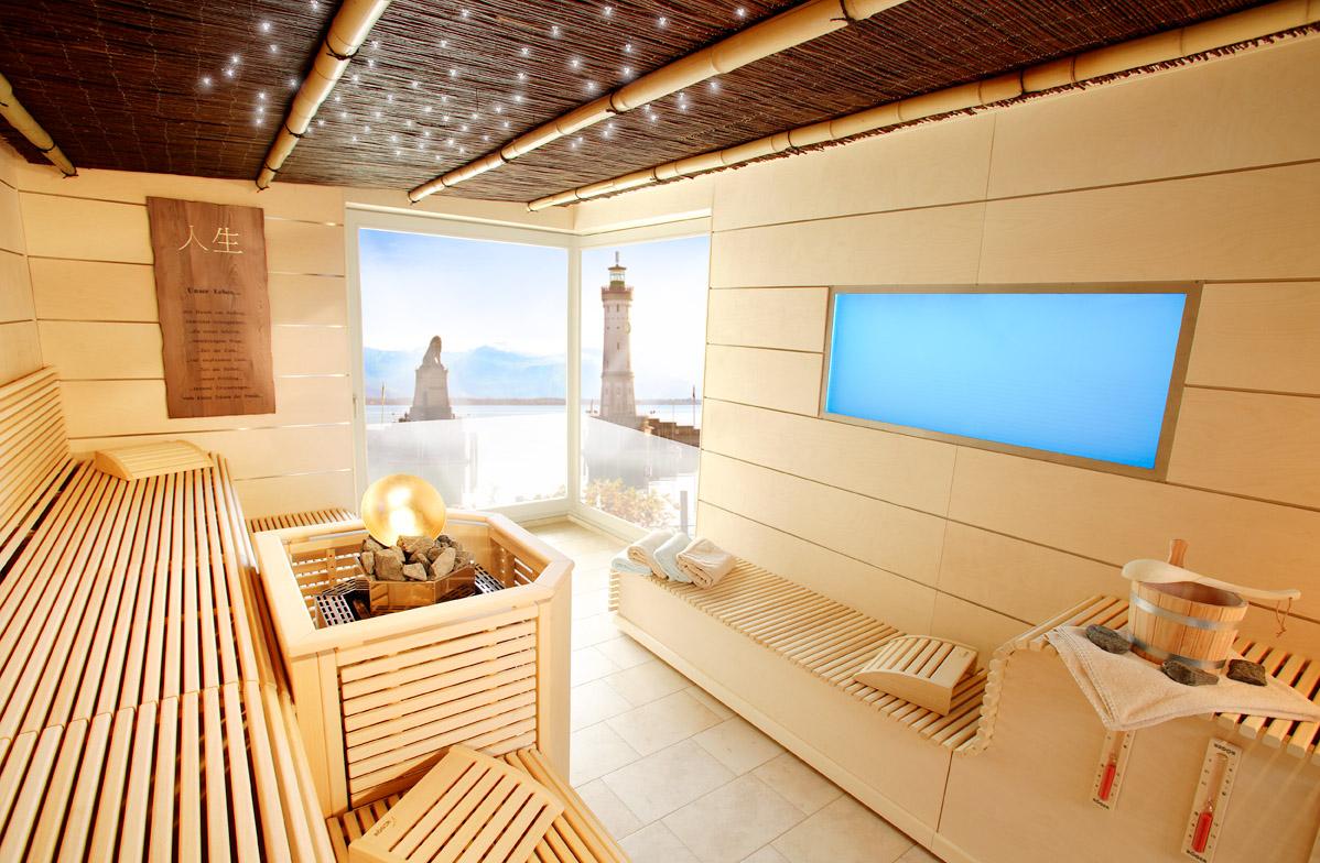 Гостиная в бане может рассматриваться как гостевая спальня, если она оборудована полными кроватями и оборудована постельными принадлежностями, тапочками и халатами.
