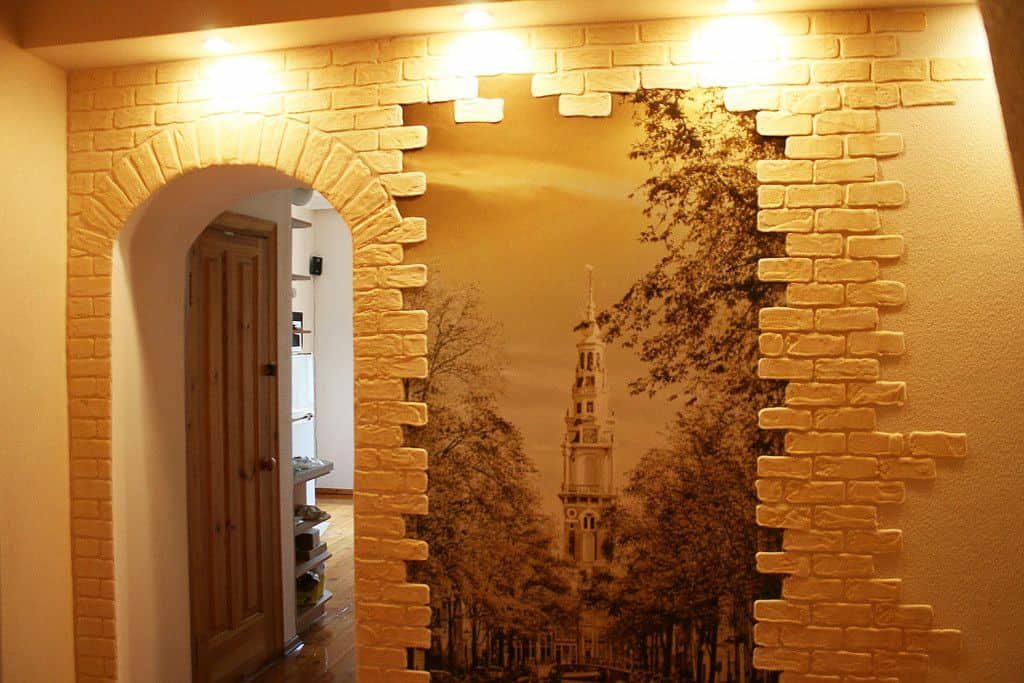 Комбинирование обоев и искусственного камня