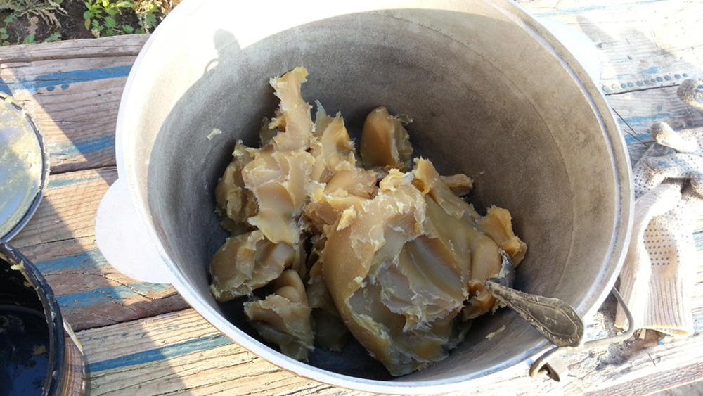 Первым делом необходимо разогреть пушечное сало до жидкого состояния. Плавится данное вещество при температуре около 90 градусов по Цельсию