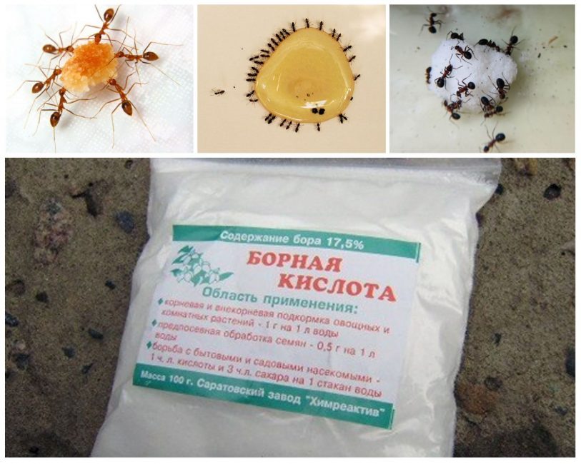 - смесь борной кислоты с водой, медом и сахаром — полученный сироп наносят каплями в местах наиболее частого появления рыжих вредителей;