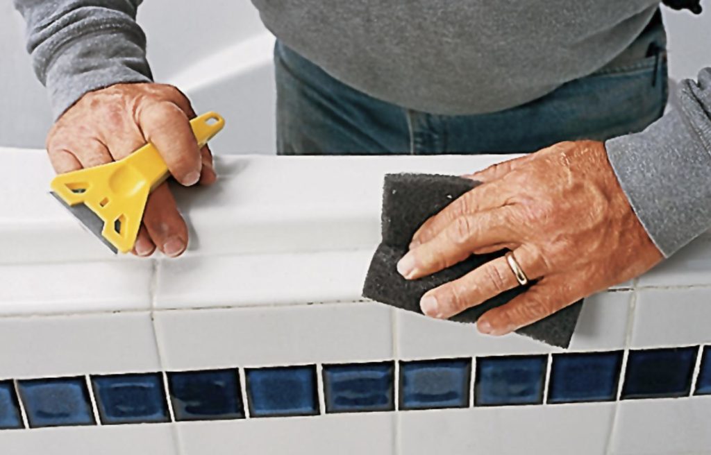 Если керамическая плитка имеет пористую структуру и не покрыта защитной эмалью, для удаления остатков герметика придется пропитывать поверхность растворителем несколько раз, постепенно счищая остатки загрязнения скребком, пластиковым шпателем, щеткой или даже пемзой. Можно использовать меламиновую губку. Перед использованием растворителя на большой поверхности стоит проверить его воздействие на плитку на небольшом участке.