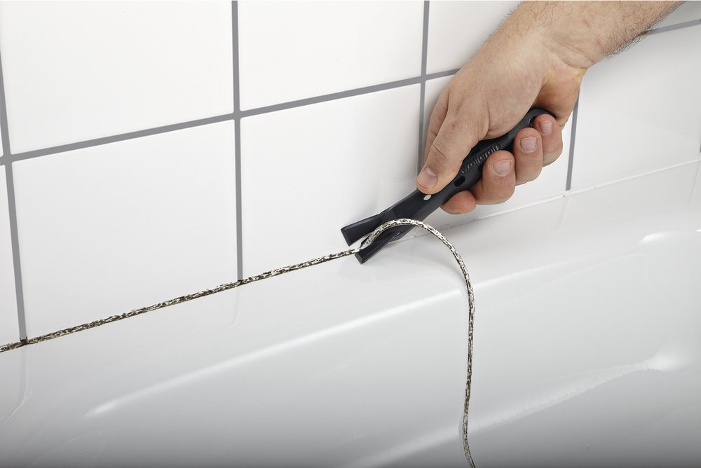 Чтобы удалить старый герметик с эмалированной ванны или кафеля, его необходимо поддеть и постараться снять цельной лентой. Придется отказаться от применения некоторых механических методов очистки и использования грубых абразивов, применение которых приводит к повреждению поверхности изделия. В качестве исключения можно использовать острый нож или тонкое лезвие, для того чтобы очень аккуратно срезать слой силикона, не задевая поверхность ванны или плитки.