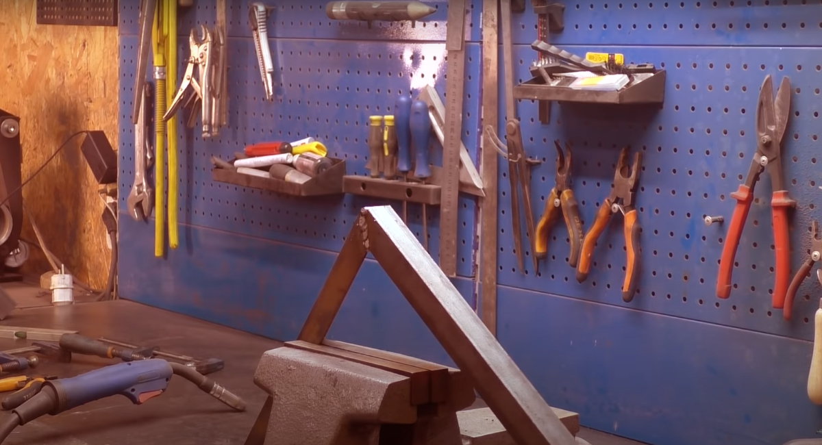 Для хранения мелких деталей, таких как гвозди, болты, гайки, шайбы сделайте ячейки из оставшейся фанеры, нарезав её на детали нужного размера и скрепив их при помощи клея и саморезов. Под крупный электроинструмент изготовьте секции большего размера